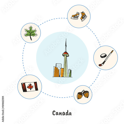 Attractive Canada Toronto Cn Tower Doodle Surrounded Hockey Stick