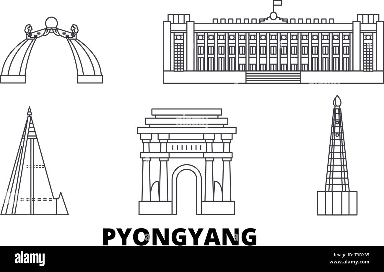 North Korea Pyongyang Line Travel Skyline Set North Korea