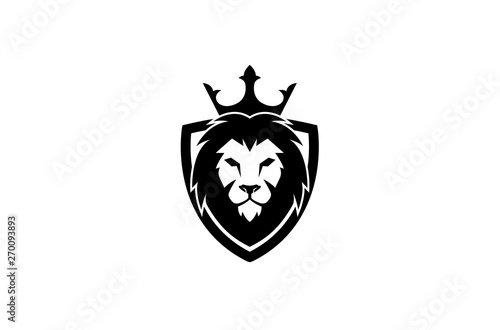 Creative Black Lion Head Crown King Shield Logo Design Symbol