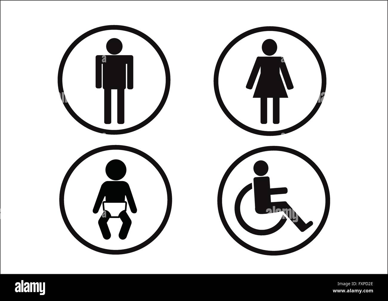 Restroom Symbol Icon Of Man Woman Disability And Child Stock