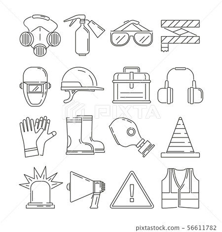 Health Safety At Work Line Style Vector Icon Set High Res Vector
