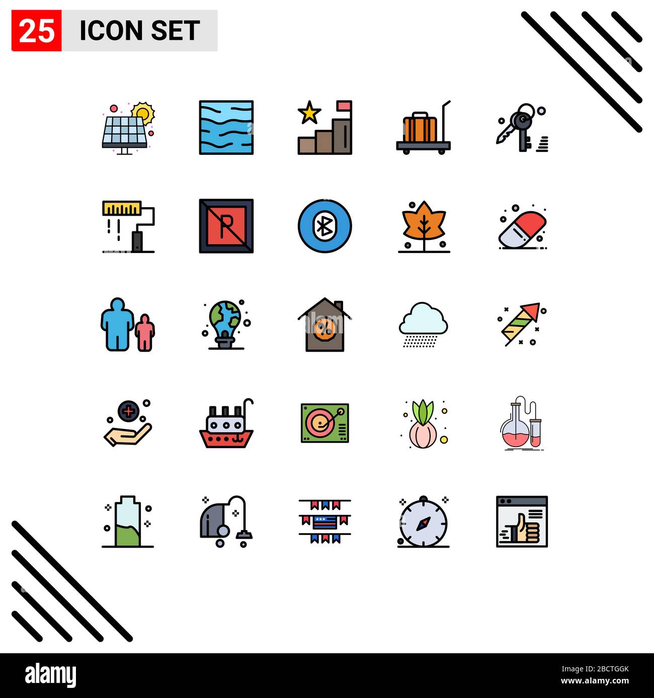 Universal Icon Symbols Group Of 25 Modern Filled Line Flat Colors