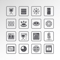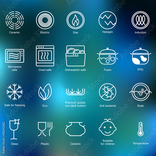 Microwave Oven Safe Icon Templates Set Vector Isolated Line