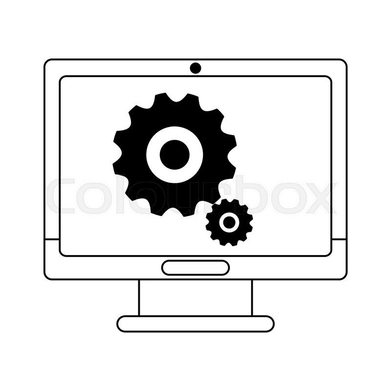 Computer Screen With Gears Symbol Stock Vector Colourbox