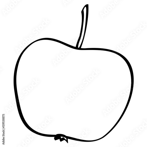 Apple Outline Black White Vector Sign Icon Monochrome Hand Drawn