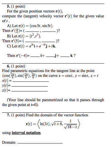 Solved 5 1 Point For The Given Position Vectors R T Chegg Com