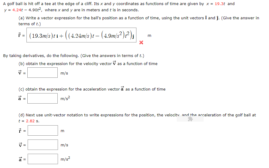 Find The Position Vector For A Particle With Acceleration Initial Velocity And Initial Position Given Below A T Homeworklib