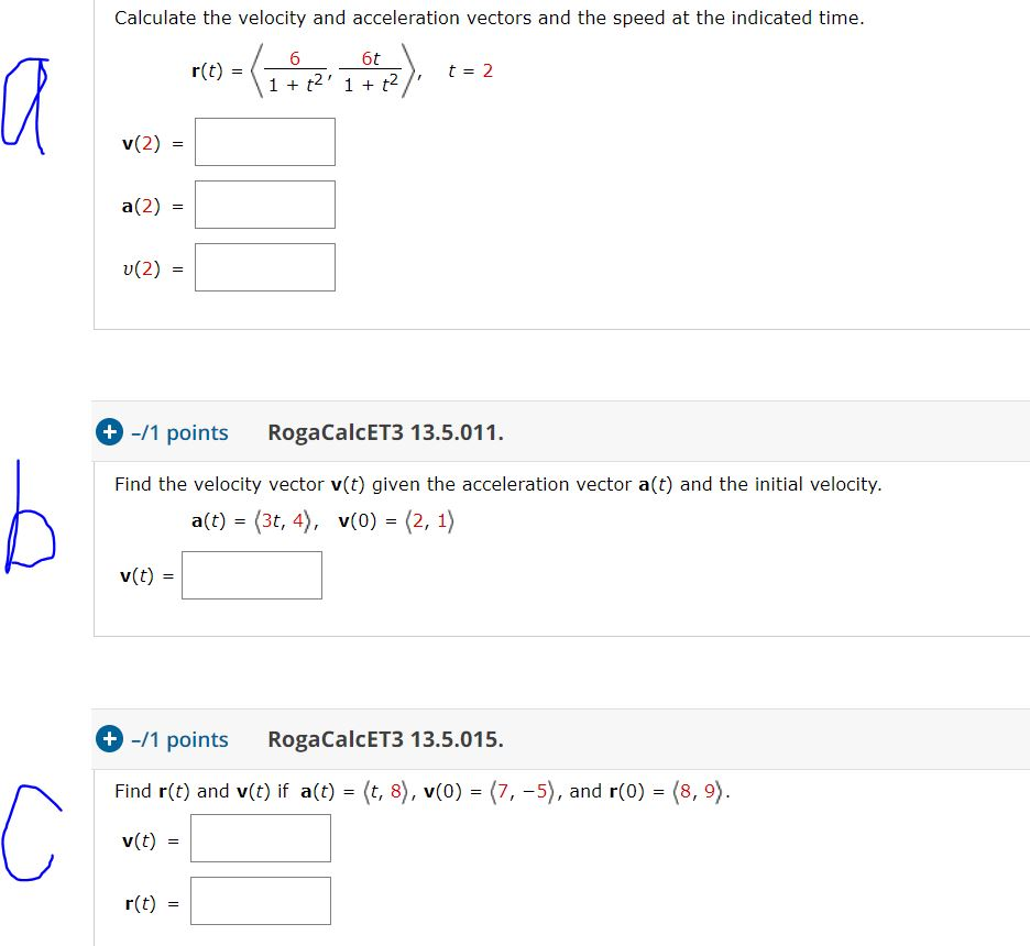 Solved Calculate The Velocity And Acceleration Vectors An Chegg Com