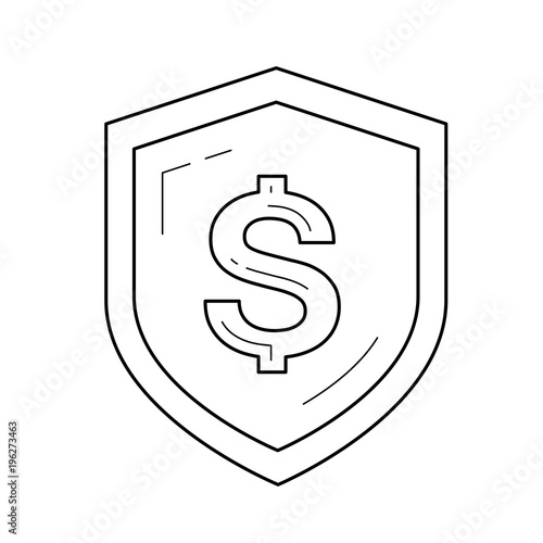 Shield With Dollar Symbol Vector Line Icon Isolated On White