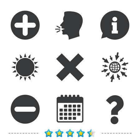 Plus And Minus Icons Delete And Question Faq Mark Signs Stock